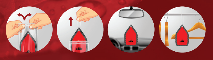 Wyjmij odświeżacz z opakowania i zawieś go w wybranym miejscu, unikając bezpośredniego kontaktu z powierzchniami. Dzięki lekkiej konstrukcji i praktycznej formie można go łatwo umieścić w każdym miejscu wymagającym odświeżenia.