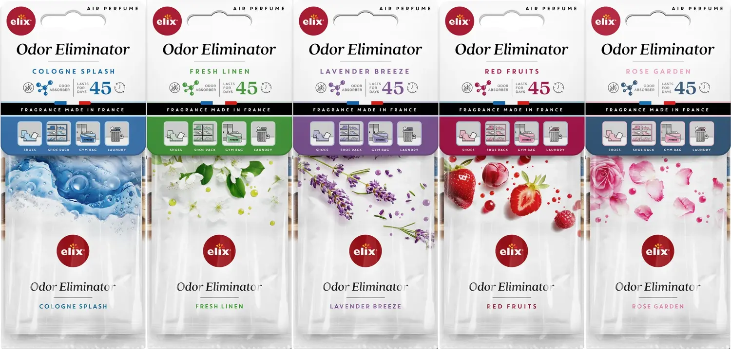ODOR ELIMINATOR is available in 5 fragrance variants, allowing you to choose the scent that best suits your preferences and surroundings: